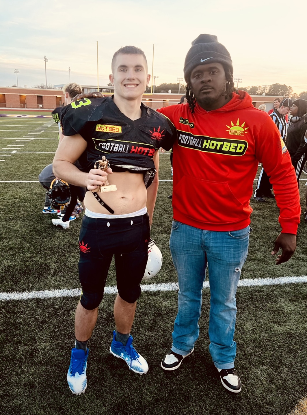 I have great speed, love studying football and being a playmaker. My future goal is to train high level athletes that want to push themselves to a higher level. I plan to study exercise science to have a deeper level of ways to use your body to its fullest potential.